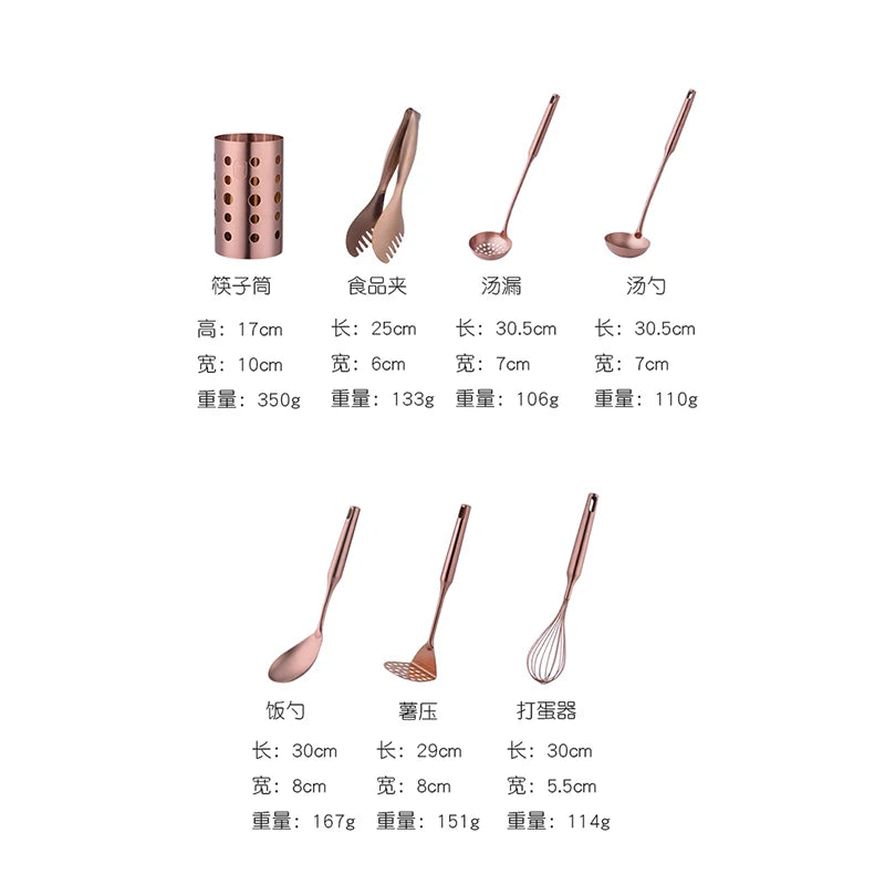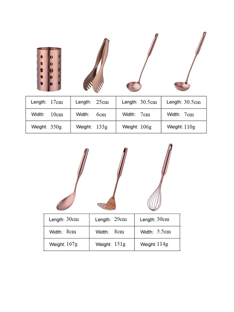 Upgrade your kitchen with 1PC Stainless Steel Kitchen Cookware Gold. This set includes a soup spoon, eggbeater, food clip, rice colander, and skimmer for all your cooking needs. Made of durable stainless steel, these utensils will elevate your cooking experience. Elevate your cooking game with this sleek and functional set.