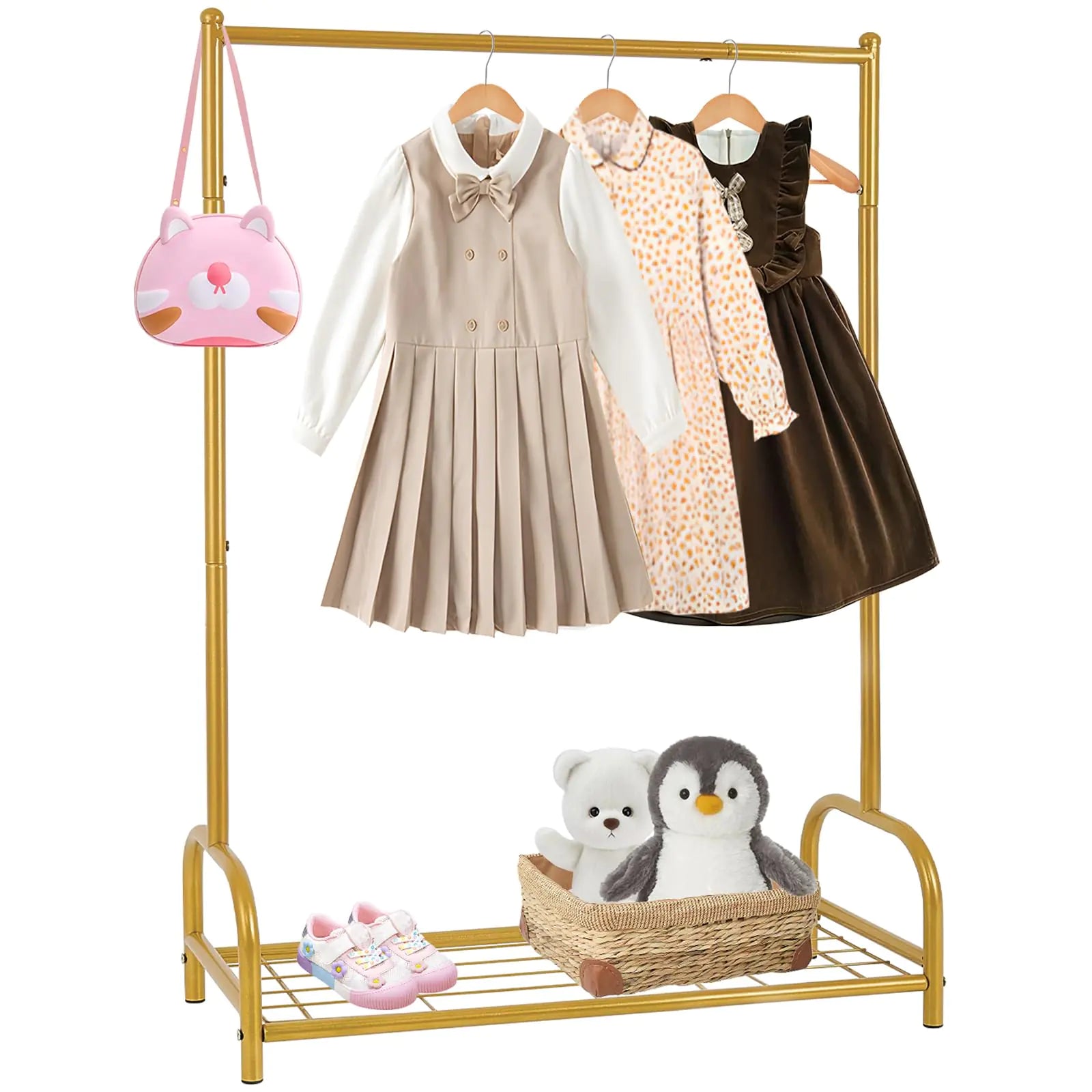 Becomrock Baby Clothes Organizer Kids Dress Up Storage Rack Small Clothes Rack with Metal Storage Shelf Kids Closet Organizers and Storage Baby Closet (Gold)