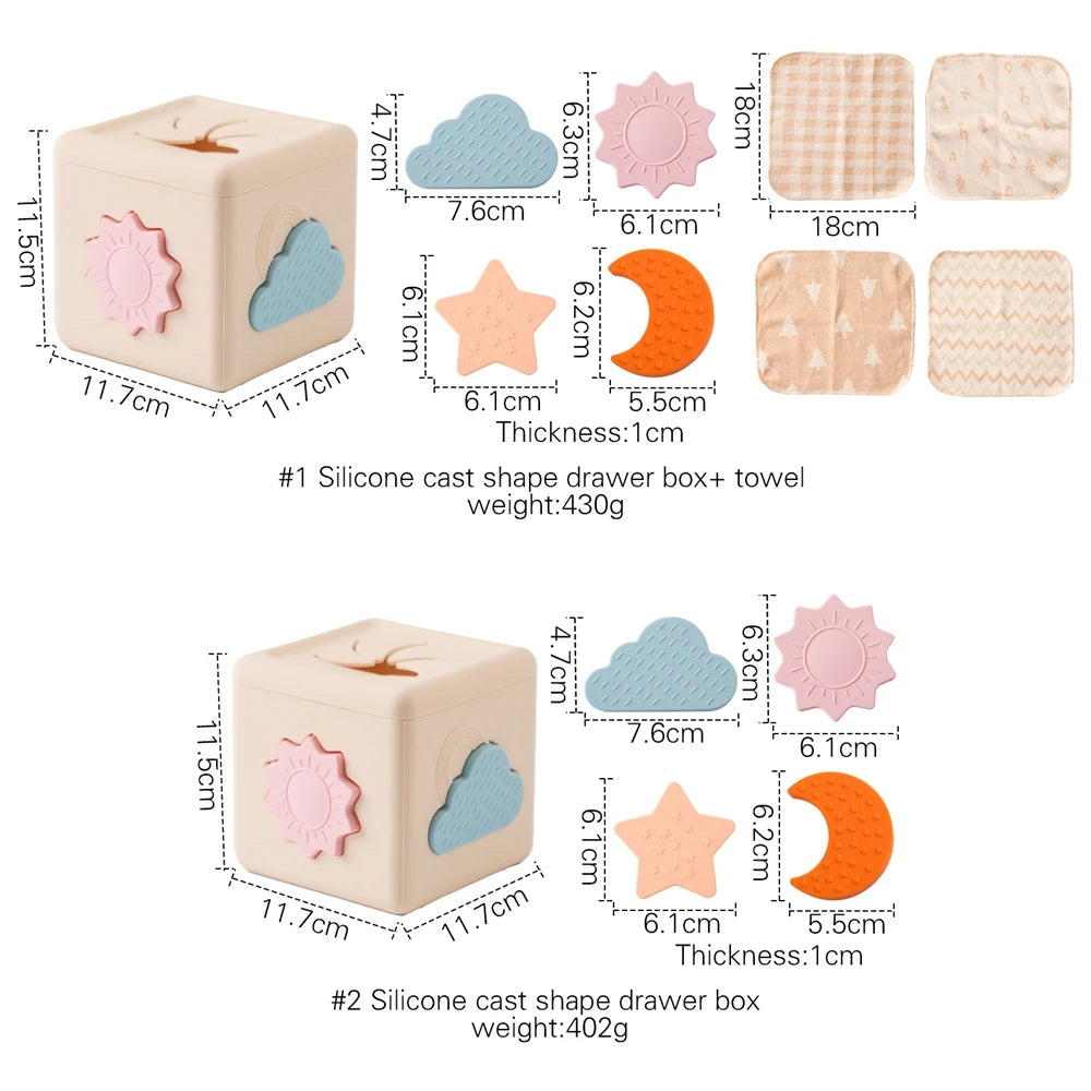 Build balance and creativity with our Montessori Silicone Baby Toys! These Drawer Box Shape Balance Blocks have multiple educational benefits for children, from improving fine motor skills to teaching shape recognition. Let your little ones stack, construct, and play their way to learning.