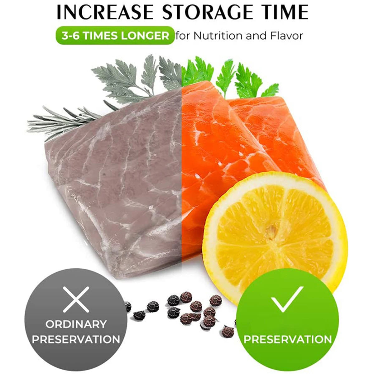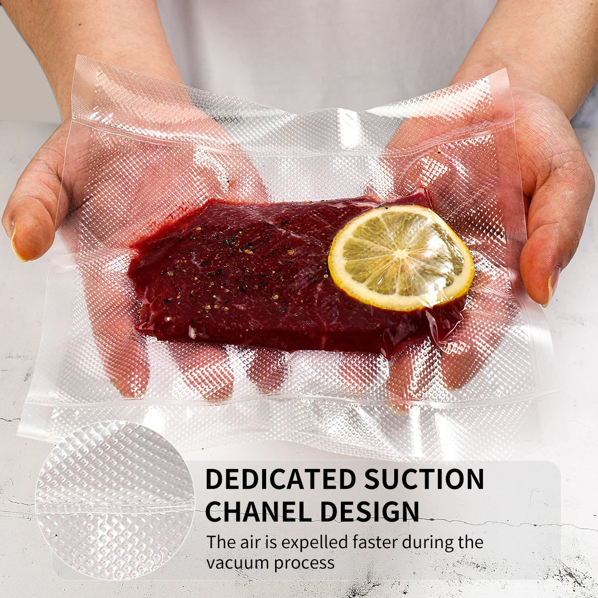 Effortlessly preserve food with saengQ Kitchen's Vacuum Sealer Bags. These versatile bags fit various sizes and lengths, perfect for vacuum packaging and sous vide cooking. Say goodbye to food waste and hello to freshness with saengQ's storage solution!