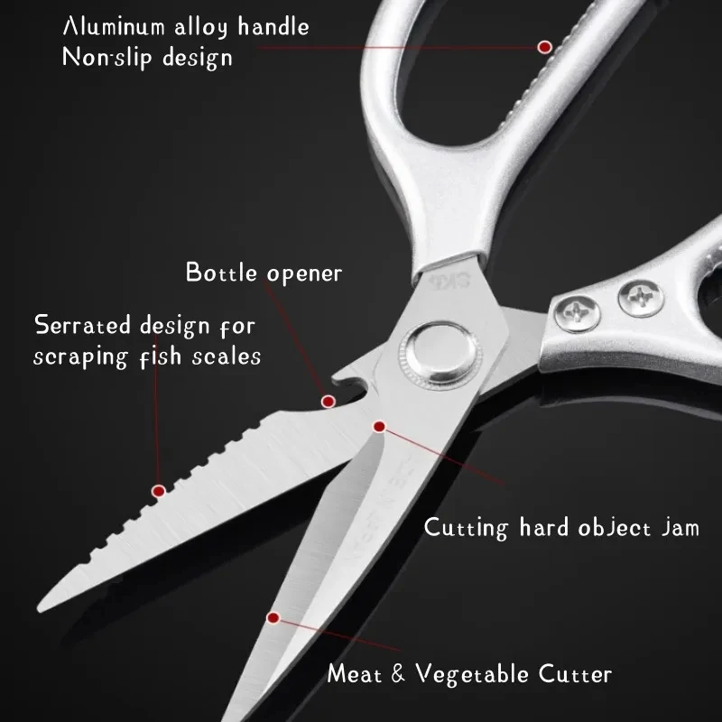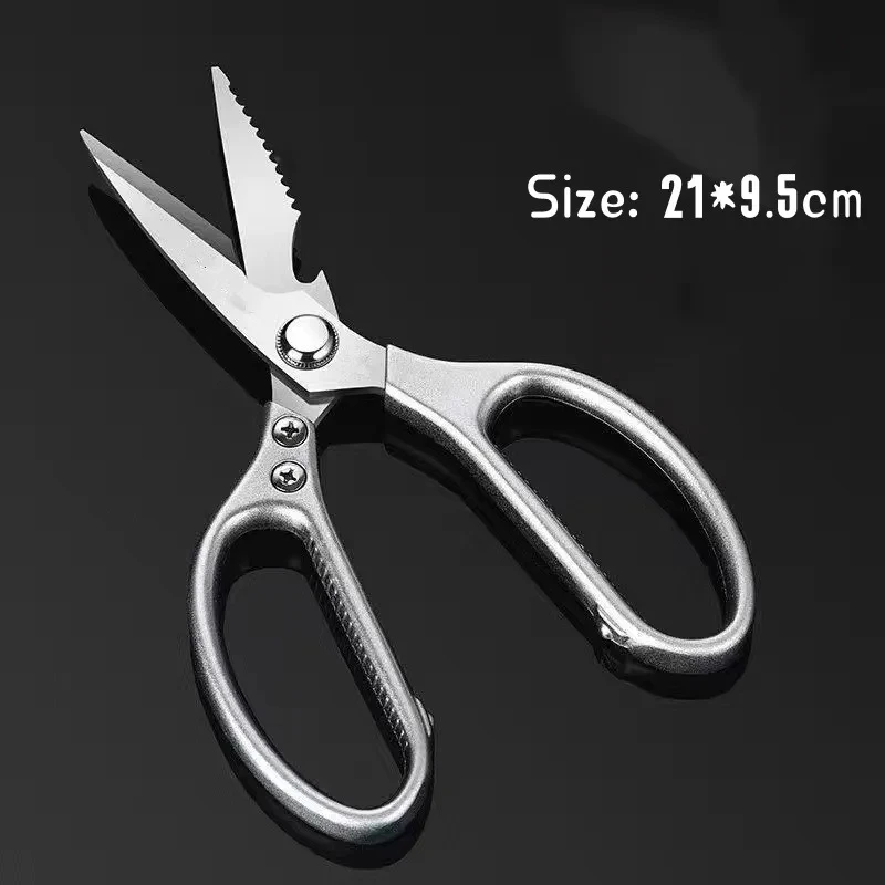 Cut, open, and conquer with our Stainless Steel Multifunctional Kitchen Scissors! This kitchen tool is powerful enough to tackle any task, from slicing through meat and fish to cracking open bottles and more. Plus, its durable stainless steel means it's built to last. Get ready to be the master of your kitchen!