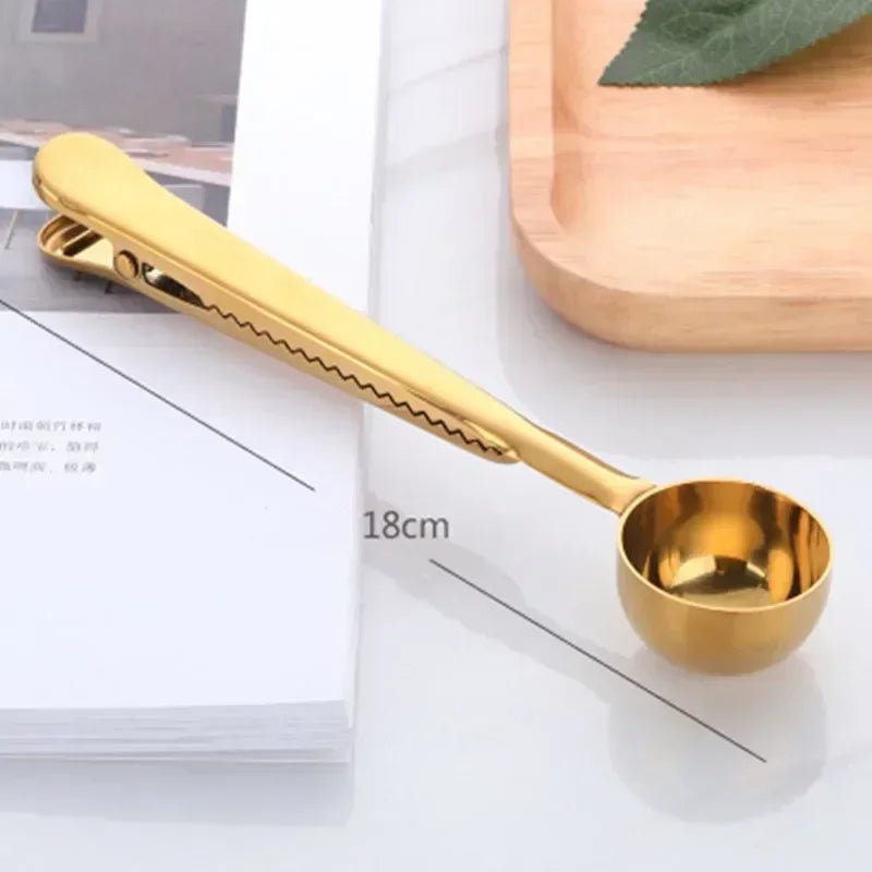 Upgrade your coffee experience with our Two-in-one Stainless Steel Coffee Spoon Sealing Clip! The perfect addition to your kitchen, this golden accessory serves as both a spoon and clip for sealing freshness. Say goodbye to stale coffee and hello to a stylish and functional addition to your cafe expresso routine.